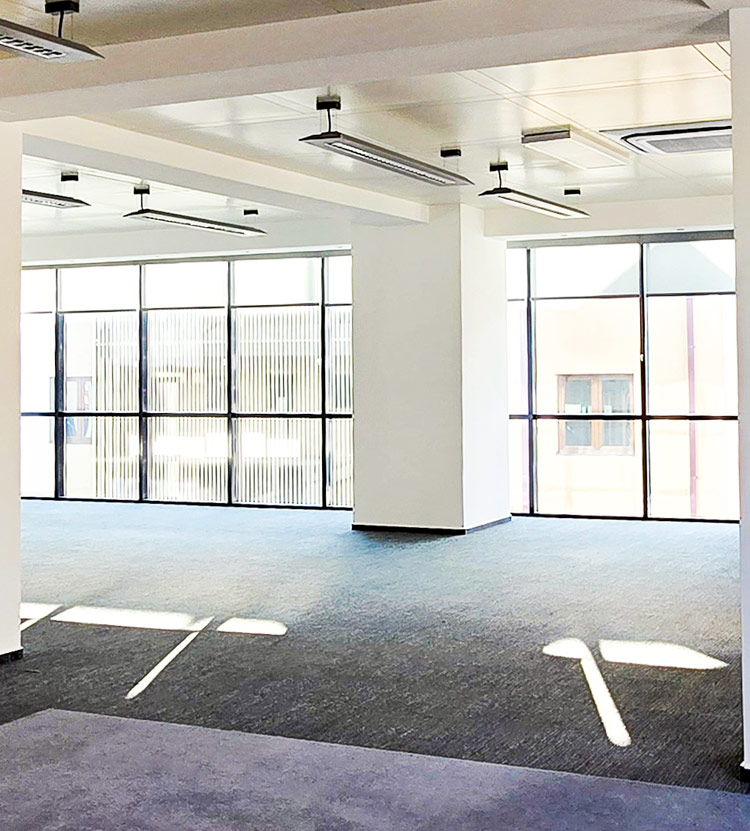 Pardoseala flotantă integrează infrastructura IT și electrică, iar iluminatul cu comandă wireless oferă flexibilitate totală. Fiecare etaj este prevăzut cu două grupuri sanitare și o bucătărie complet utilată, gata pentru utilizare imediată.
